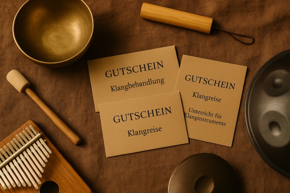 Gutscheine und Klanggeschenke laden dazu ein, Entspannung, Aufmerksamkeit und Zeit bewusst weiterzugeben, für Menschen, die Dir am Herzen liegen.